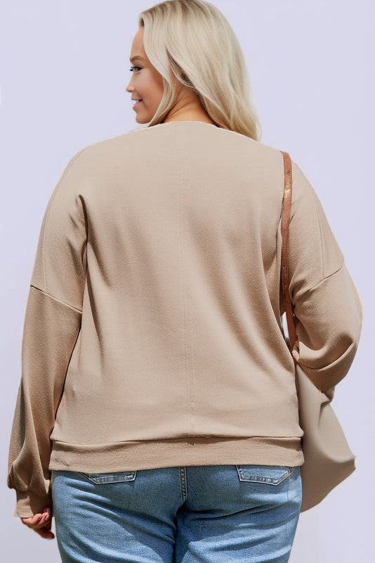 Stay cozy and stylish in this plus size sweatshirt featuring a fun floral peace sign. Its soft fabric and playful stripes make it perfect for relaxed, trendy looks. The khaki color pairs easily with jeans or leggings for an easy, positive vibe.