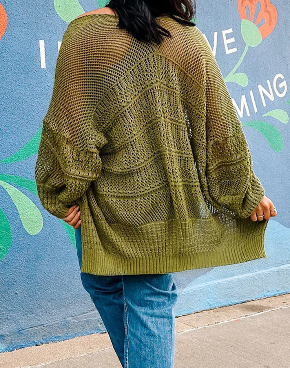 Embrace effortless style with the Green Crochet Knit Cardigan LT. Its oversize crochet design delivers a breezy, relaxed fit perfect for layering throughout the seasons. Crafted from soft, breathable fabric, this cardigan keeps you comfortable all day long. Intricate patterns add texture and a touch of elegance, making it an ideal choice to elevate your everyday wardrobe.