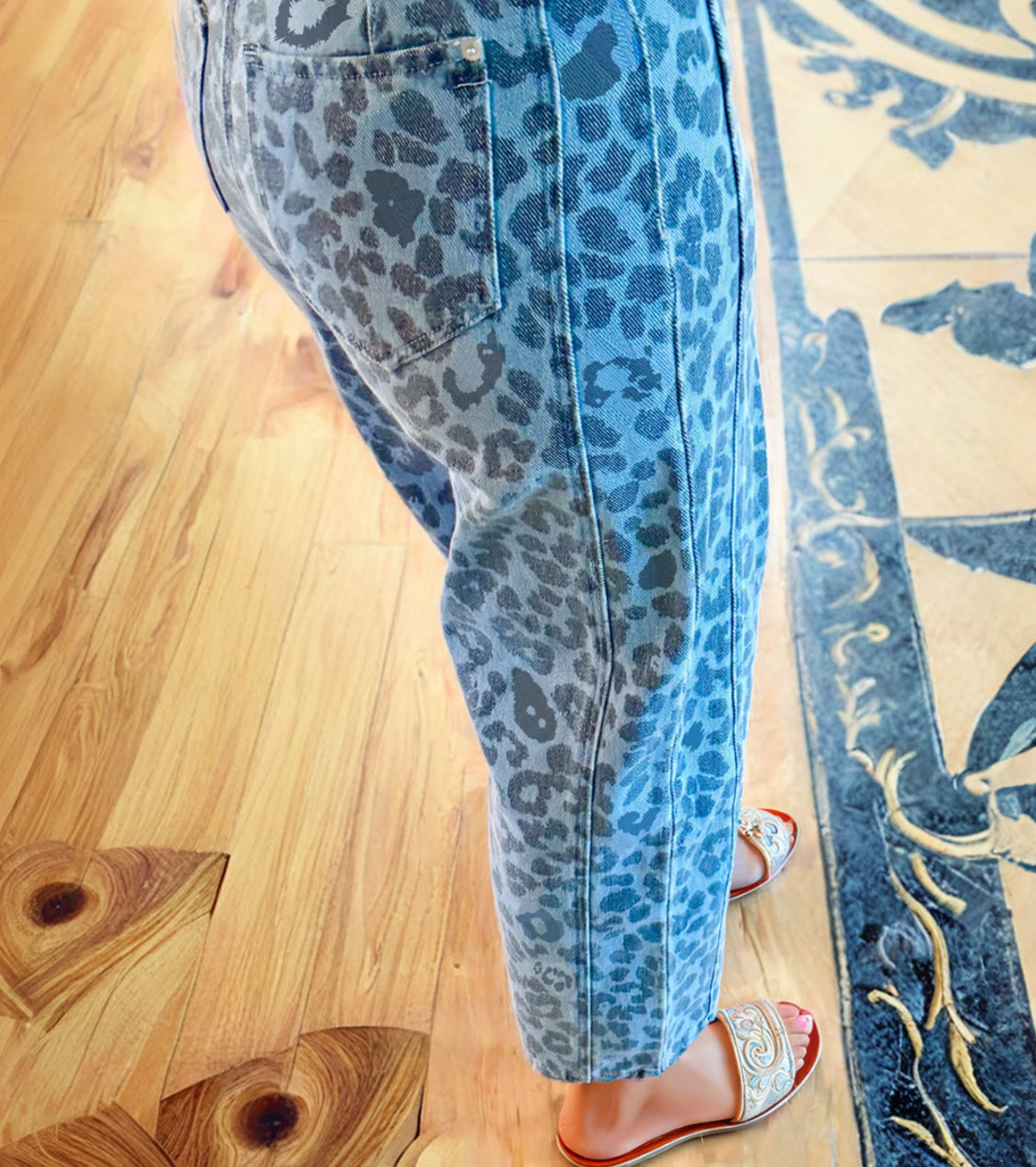 These Sky Blue Leopard Straight Jeans combine bold leopard print with a flattering loose straight fit, perfect for expressing your wild side. Crafted from durable, high-quality denim, they offer lasting comfort and style that stays on trend. Ideal for adding a standout piece to your wardrobe with both comfort and edge.