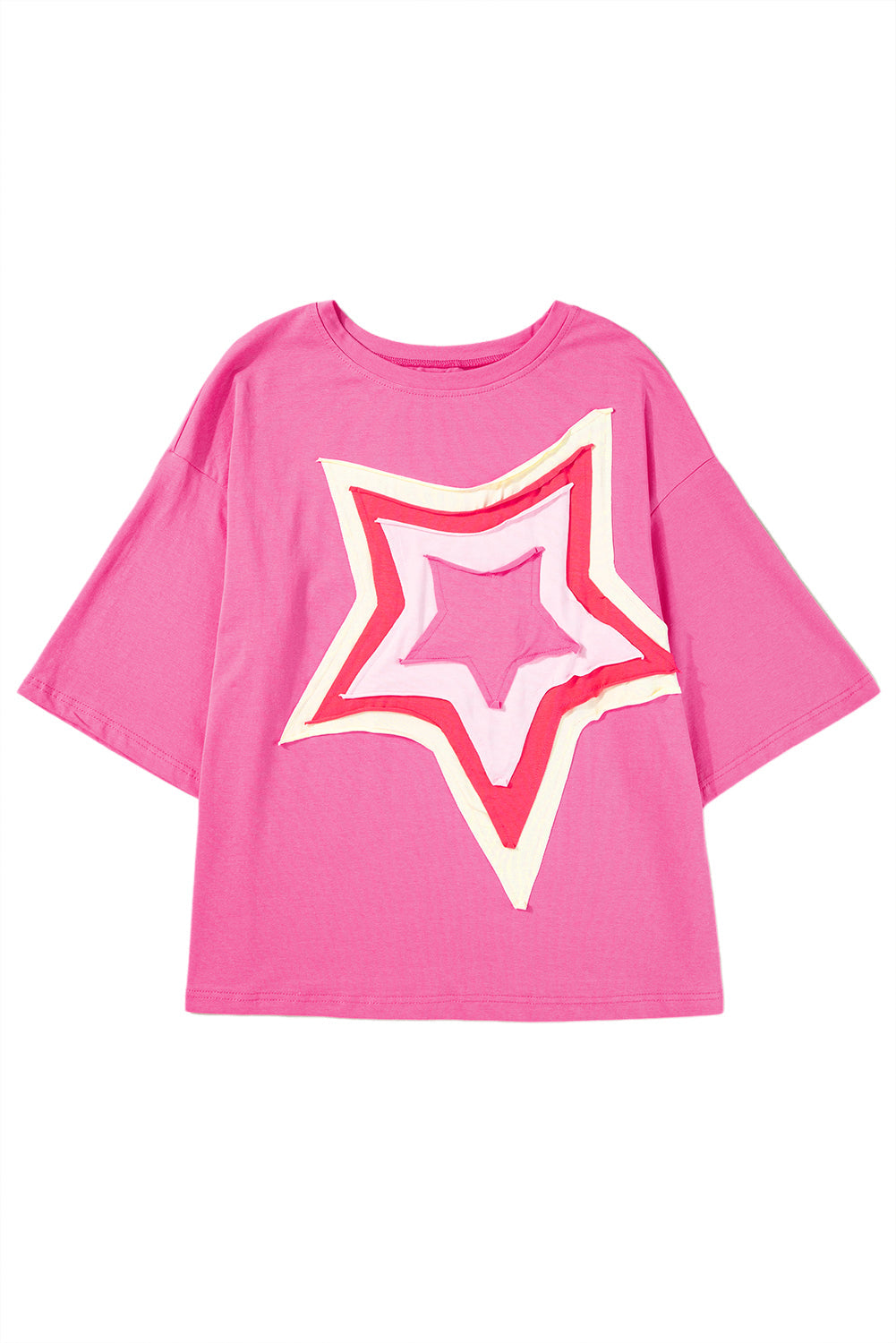 This trendy oversized tee rocks a fun colorblock design with playful star patches that instantly jazz up your look! Its roomy fit and half sleeves create that perfect laid-back vibe you'll love lounging in. Mix and match with jeans, shorts, or skirts for endless outfit possibilities – whether you're running errands or hanging with friends, this versatile top has got your style covered!